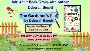 07/29/20252:00pm–3:00pm Adams Free Library 92 Park Street Adams, MA 01220