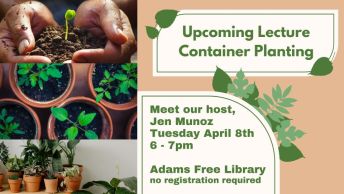 04/08/20256:00pm–7:00pm Adams Free Library - Miller Annex 92 Park Street Adams, MA 01220